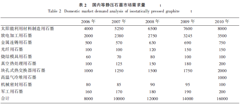 2.1 國(guó)內(nèi)市場(chǎng)等靜壓石墨的需求量